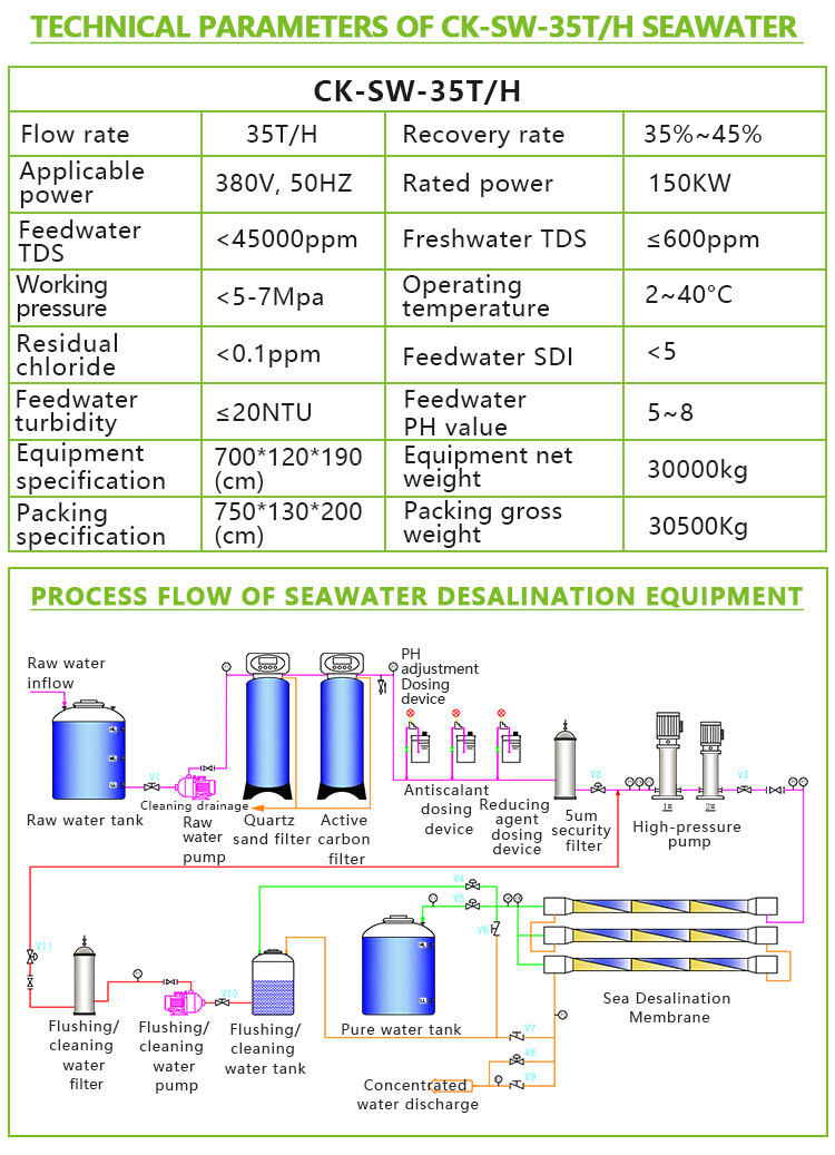 The seawater has a high salt content, high hardness, and is highly corrosive to equipment. Moreover, the seasonal changes in water temperature make the reverse osmosis seawater desalination system much more complex than conventional brackish water desalination systems, and the engineering investment and energy consumption are also much higher. Therefore, it is particularly important to reduce engineering investment and energy consumption through meticulous process design and reasonable equipment configuration, thereby reducing the unit water production cost and ensuring the stable operation of the system.