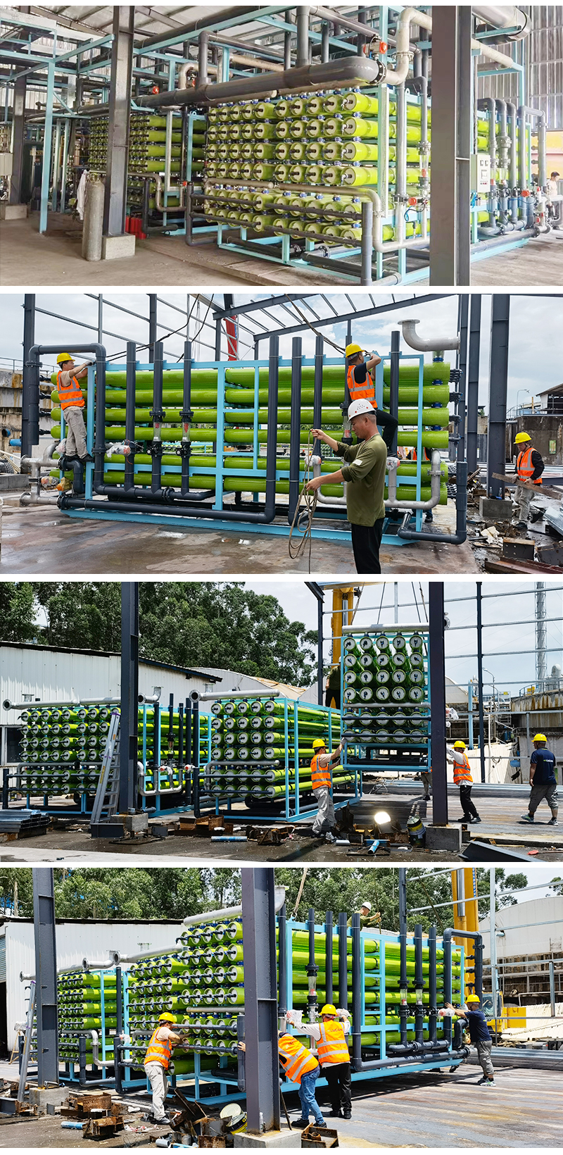 反渗透设备是将原水经过精细过滤器、颗粒活性碳过滤器、压缩活性碳过滤器等,再通过泵加压,利用孔径为1/10000μm(相当于大肠杆菌大小的1/6000,病毒的1/300)的反渗透膜(RO膜),使较高浓度的水变为低浓度水,同时将工业污染物、重金属、细菌、病毒等大量混入水中的杂质全部隔离,从而达到饮用规定的理化指标及卫生标准,产出至清至纯的水,是人体及时补充优质水份的最佳选择.由于RO反渗透技术生产的水纯净度是目前人类掌握的一切制水技术中最高的,洁净度几乎达到100%,所以人们称这种产水机器为反渗透纯净水机。 反渗透设备应用膜分离技术,能有效地去除水中的带电离子、无机物、胶体微粒、细菌及有机物质等。是高纯水制备、苦咸水脱盐和废水处理工艺中的最佳设备。广泛用于电子、医药、食品、轻纺、化工、发电等领域。