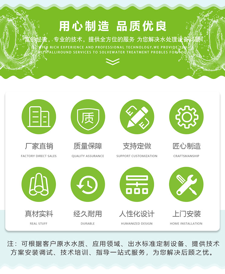 ●严格按标准来规范我们的产品设计、制造、安装、售后服务行为,用我们的真诚、热情、执着和追求,为客户奉献优质的产品质量,周到的安装、维修服务。