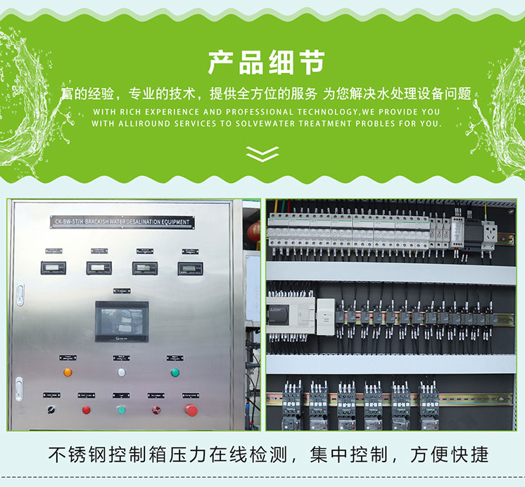 苦咸水的淡化实际上就是盐水淡化,使盐水脱盐淡化或者经处理后达到饮用水标准 。苦咸水淡化装置采用的反渗透技术,是指在饮用水中,当氯化物超过一定范围(国家标准250mg/L)时,就视为苦咸水,由于氯化物不用于其他物质,可采用某种滤料将其去除,而氯化物的去除工艺一般是采用反渗透技术进行处理,该技术是近些年来发展起来的水处理技术,尤其适用于对水中氯化物的处理,苦咸水淡化装置就是采用这种最新的反渗透技术。 苦咸水淡化装置可根据用户的实际需求进行个性化设计,采用较先进的背压技术,可为用户节省大量的运行费用和设备技术成本。