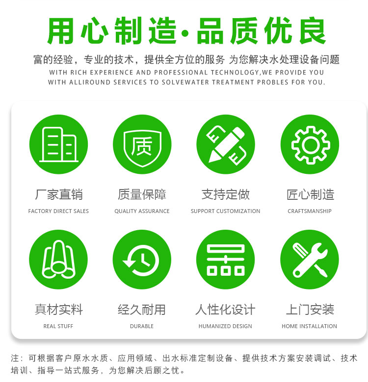 ●严格按标准来规范的产品设计、制造、安装、售后服务行为,用我们的真诚、热情、执着和追求,为客户奉献优质的产品质量,周到的安装、维修服务。