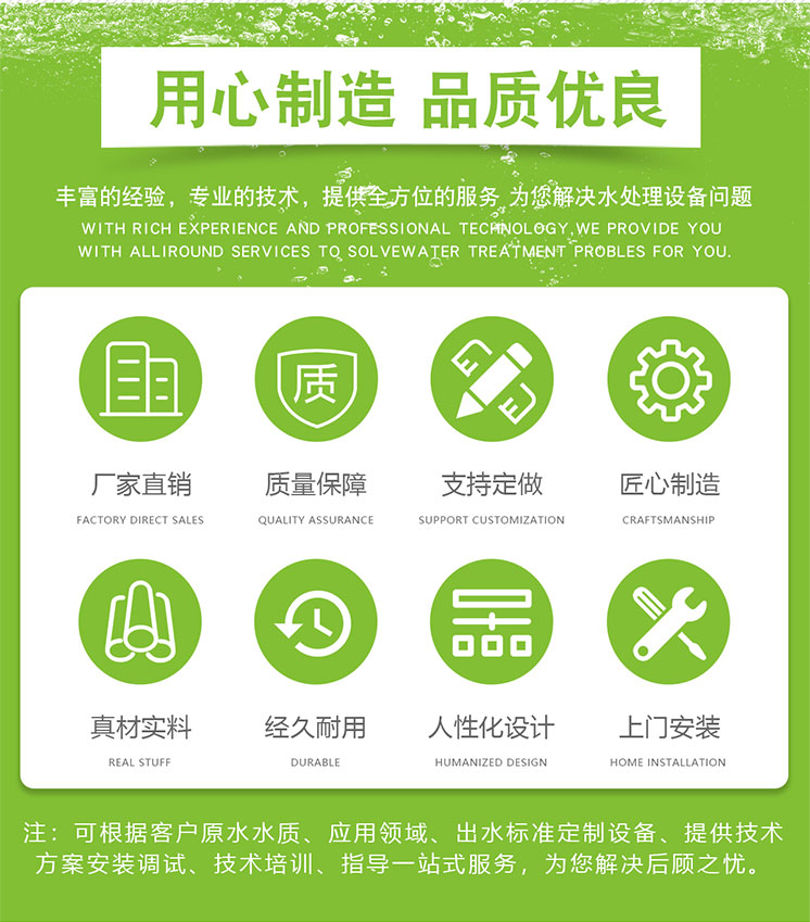 ●严格按标准来规范的产品设计、制造、安装、售后服务行为,用我们的真诚、热情、执着和追求,为客户奉献优质的产品质量,周到的安装、维修服务。