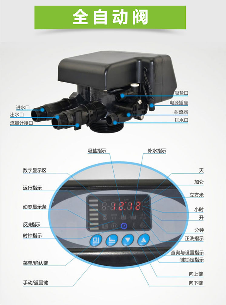 全自动软水器是一种运行和再生操作过程全自动控制的离子交换软水器,利用钠型阳离子交换树脂去除水中钙镁离子,降低原水硬度,以达到软化硬水的目的 从而避免碳酸盐在管道、容器、锅炉产生结垢现象。大大节省投资成本的同时又能保证生产顺利进行。已广泛应用于各种蒸汽锅炉、热水锅炉、热交换器、蒸汽冷凝器、直燃机等设备及系统的循环补给水中。此外还用作生活水处理,食品、电镀、医药、化工、印染、纺织、电子等工业水处理以及作为脱盐系统的前置处理。经过单级或多级软水器处理后的产水硬度可大幅度降低。